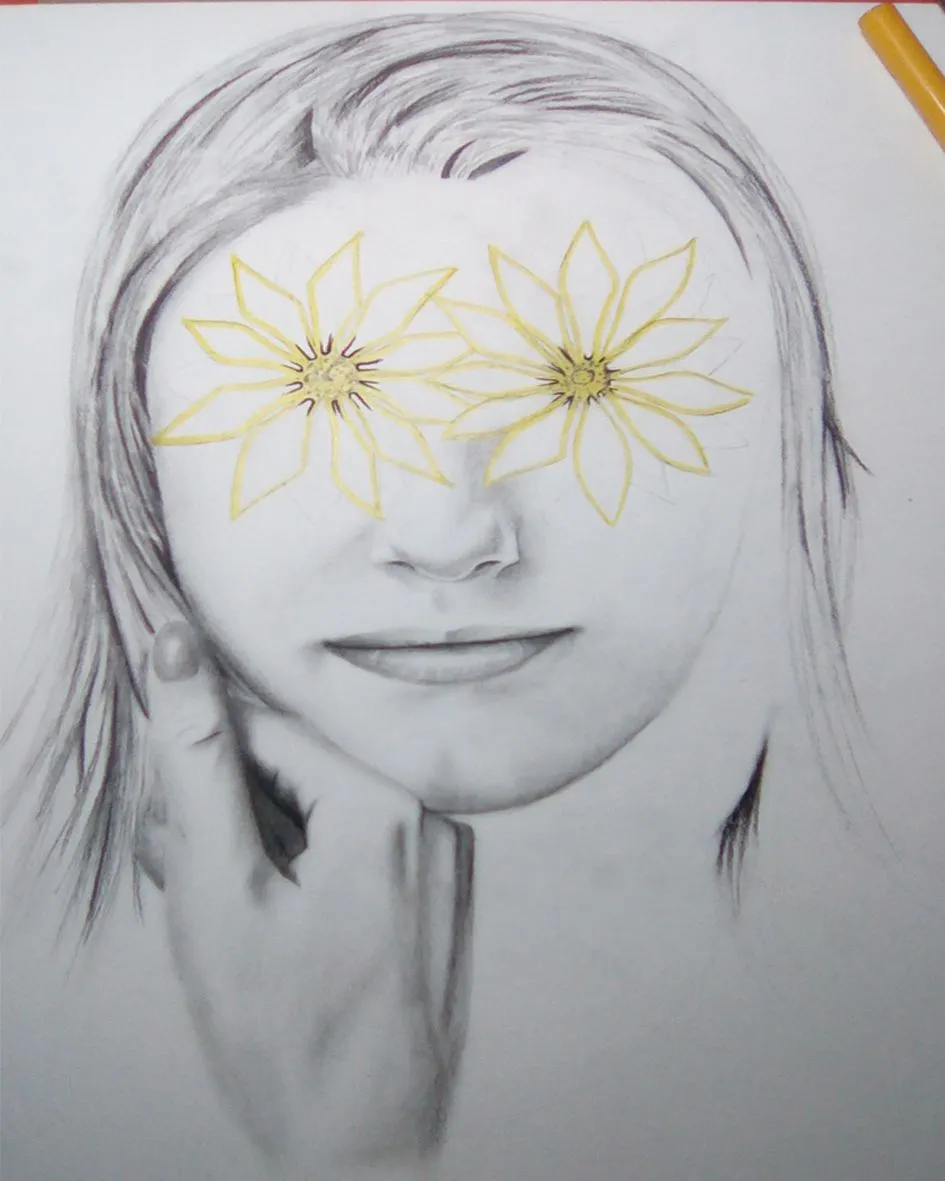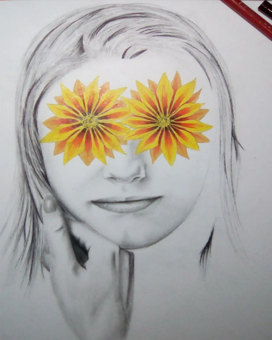I liked the portraits to pencils where they make color to the eyes, or the lips and I wanted to do the same but with the flowers.