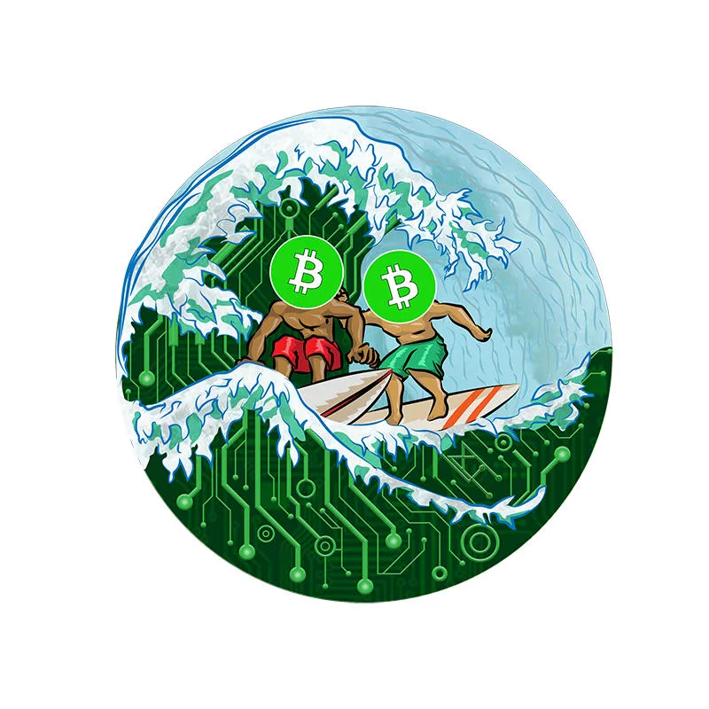 Then I added my own ideas and elements that a BCH related logo should have, such as the sea resembling a circuit board, + the request of BCH boys of depicting two men surfing the wave...And the result was this: