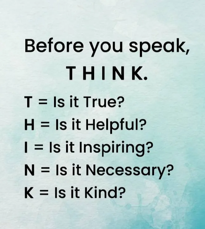 T means True H is it helpful i is it inspiring n is it necessary? K is it kind ? Yes