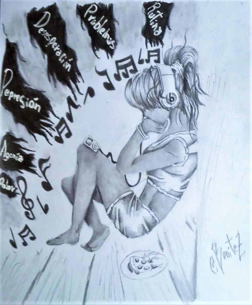 La música, rayos, no sería yo sin ella. A veces me pongo música para dejar de pensar, otras veces para pensar el doble, el triple, para salir de depresión o profundizar en ella. He estado bastante atareado con un proyecto por lo que no dediqué mucho tiempo a este dibujo, aún así os lo comparto porque sí, porque amo la música tanto como muchos de ustedes.