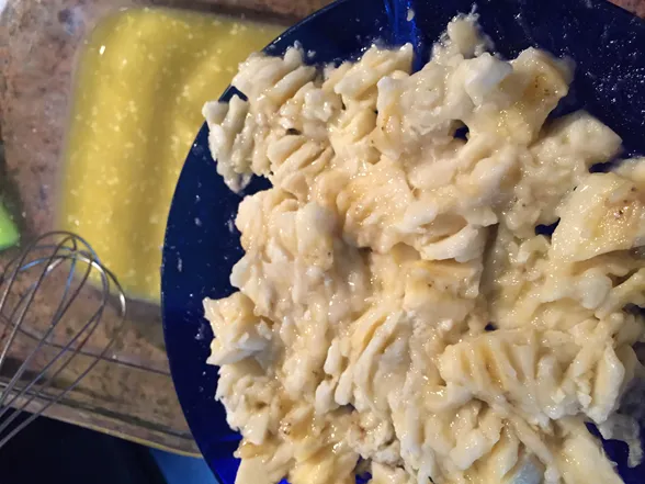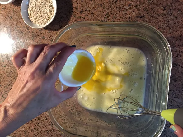 - Empezamos batiendo el huevo con la mantequilla derretida.