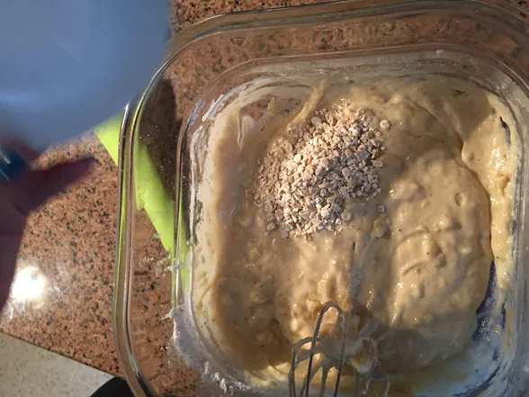 - Trituramos el cambur/banana y lo añadimos a la mezclamos y batimos.
