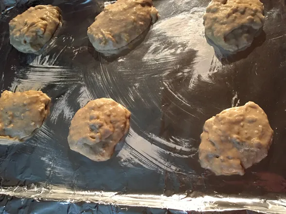 - Colocamos una cucharada de la mezcla en una bandeja para hacer las galletas, llevamos al horno por 15 minutos a 300°C.