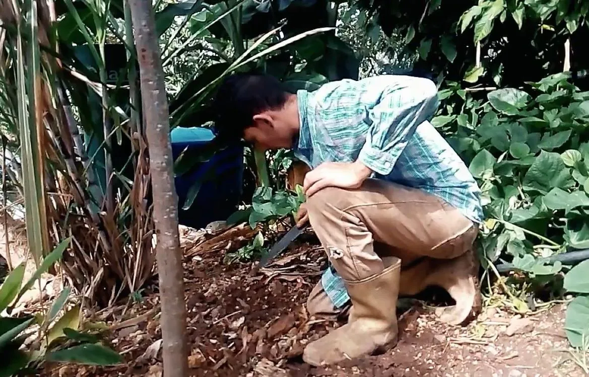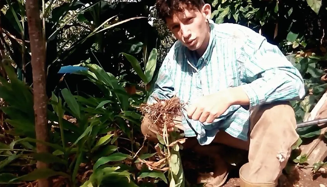 Oxigenando un poco la tierra luego de cosechar el jengibre