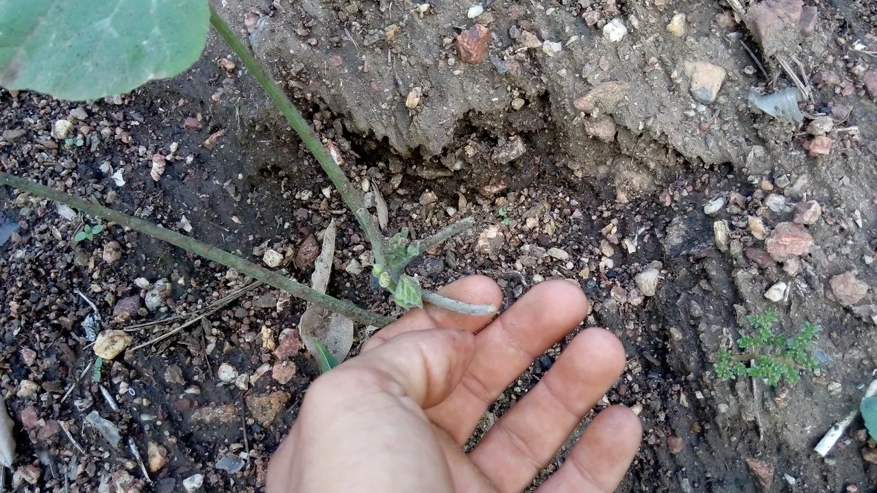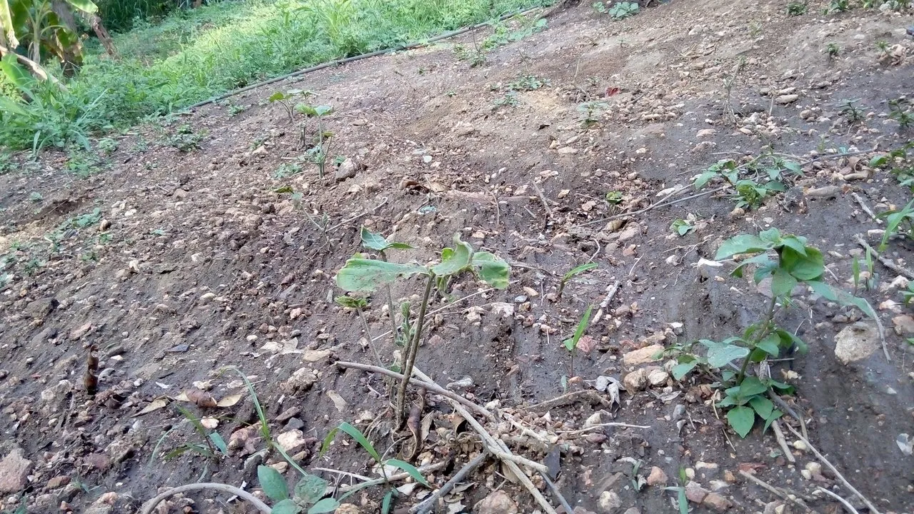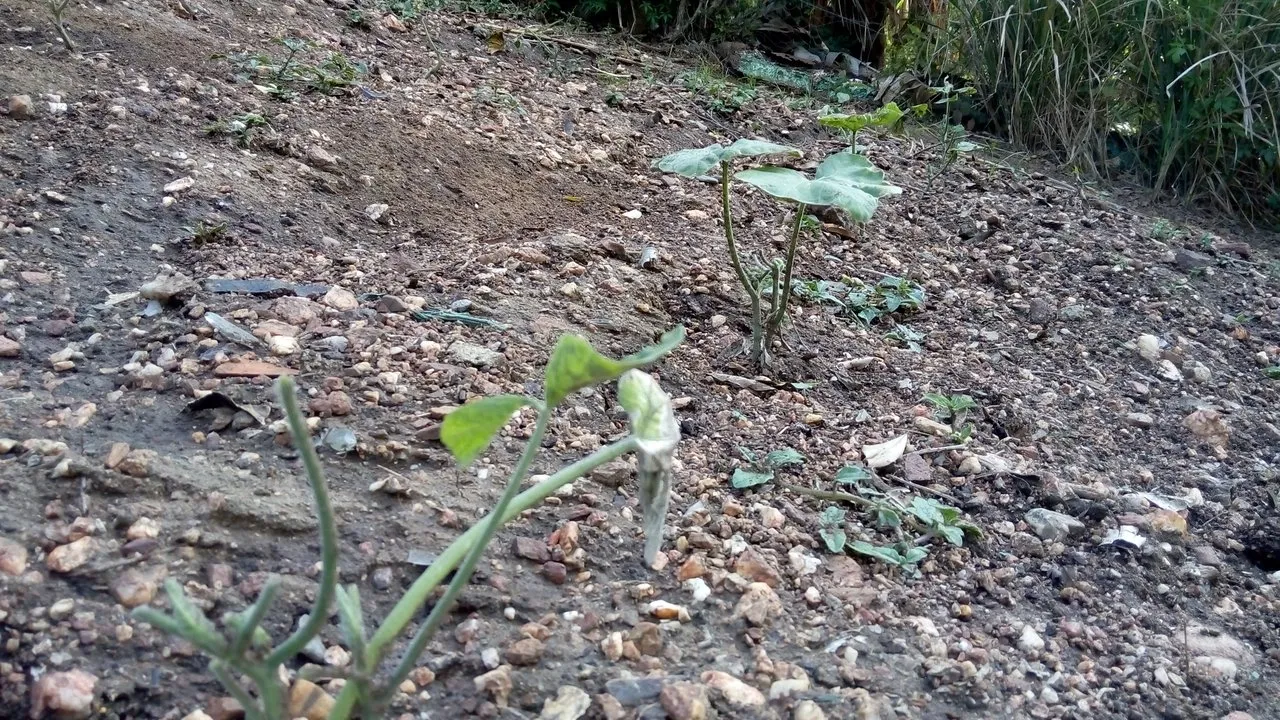 El riego fue permanente, por lo que no se debe a las condiciones de la tierra, previo a esto, fue abonada y removida para que se oxigenara bien. Sin embargo no conté con un factor que es difícil de controlar, las gallinas de la vecina, Bachacos y los Matos. Estos animales se comieron las tiernas hojas de la Auyama, tal y como se puede evidenciar en la foto.