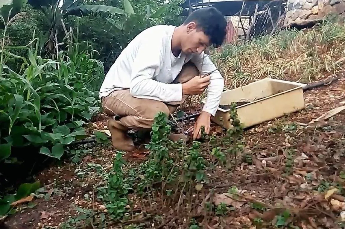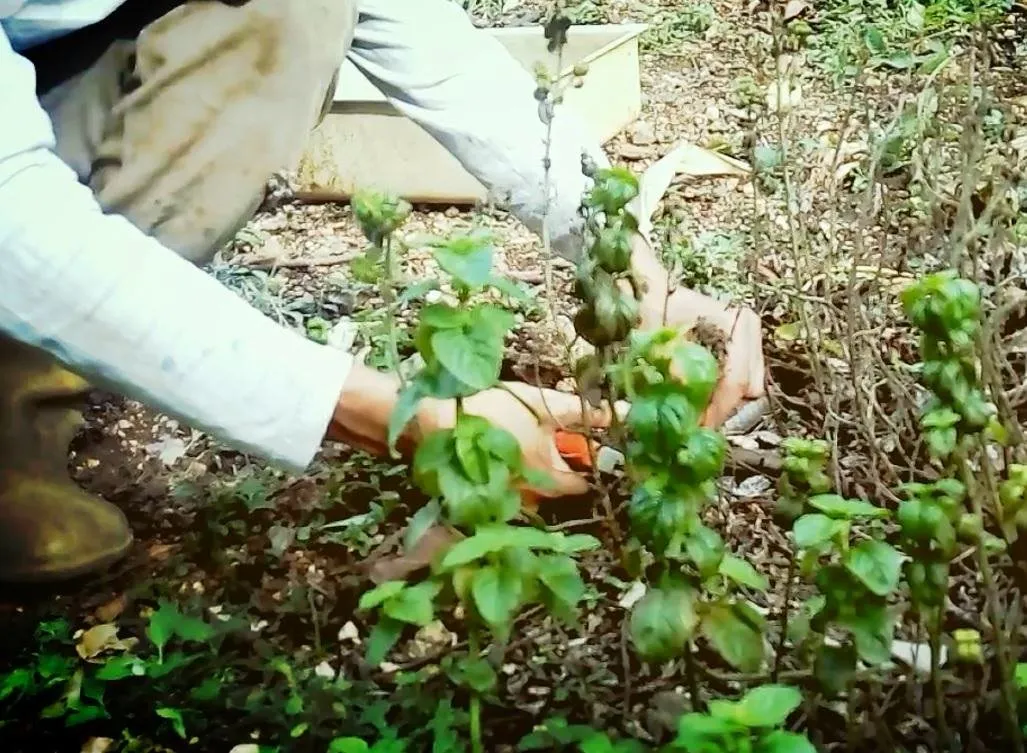 Aplicando poda al cultivo de menta