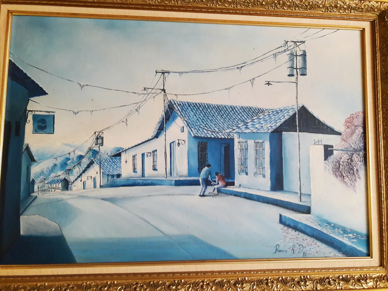 El último de todos pero no menos apreciado por la Muñe ni por mí. Este cuadro es la misma calle donde estoy viviendo pero desde la perspectiva de la casa hacia afuera ¿genial no? Me gusta a pesar de que tiene una técnica muy difusa pero igualmente es agradable por lo que representa.