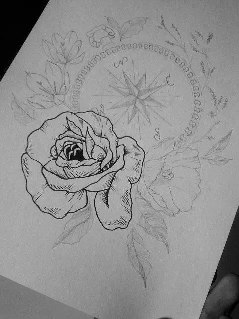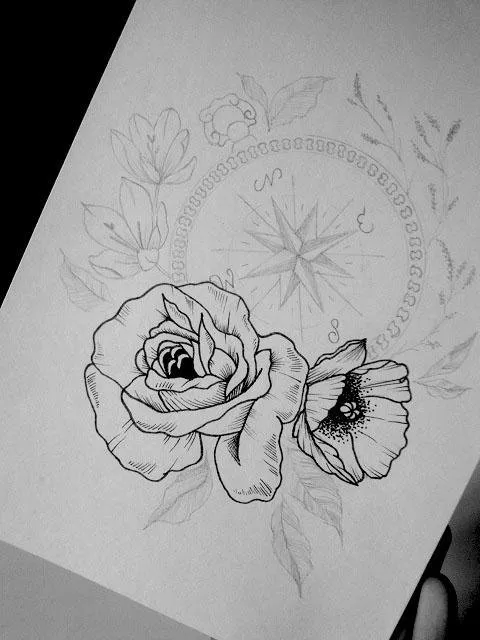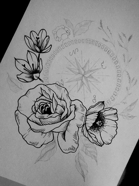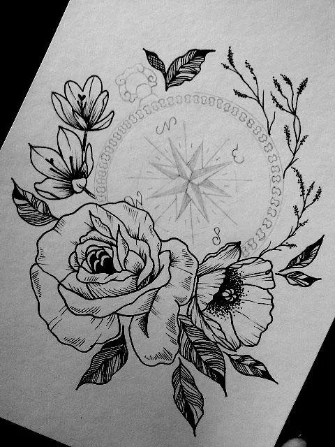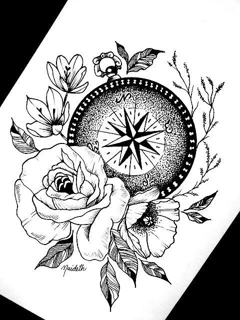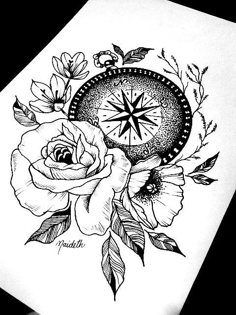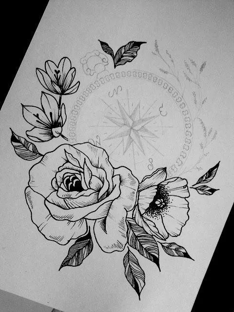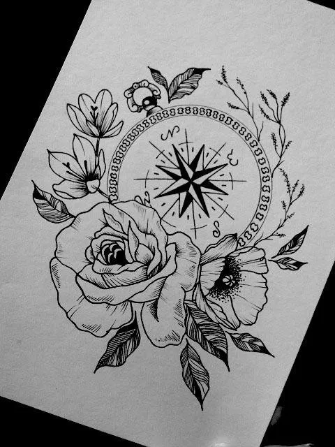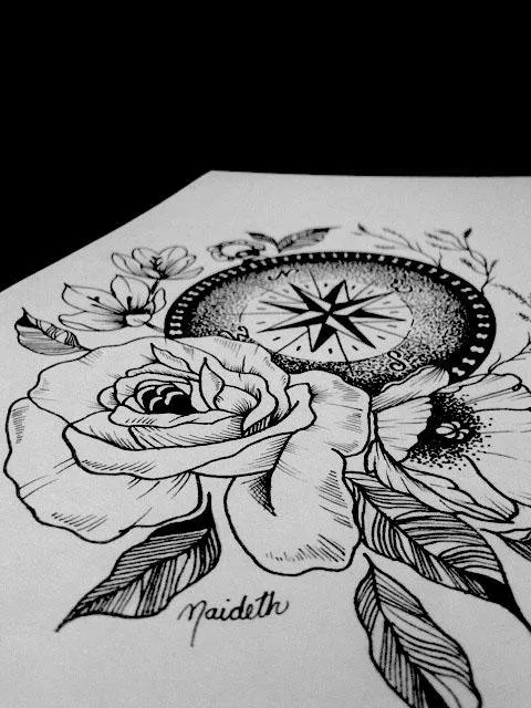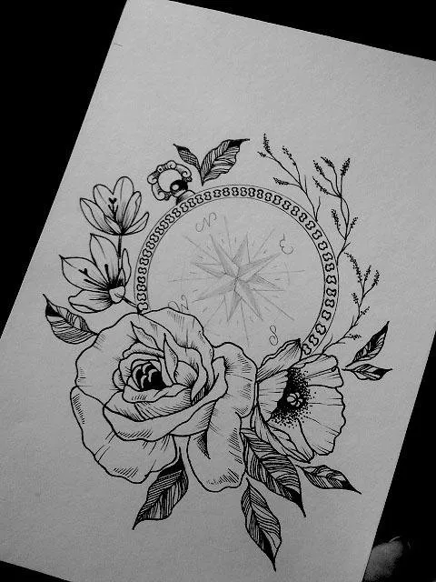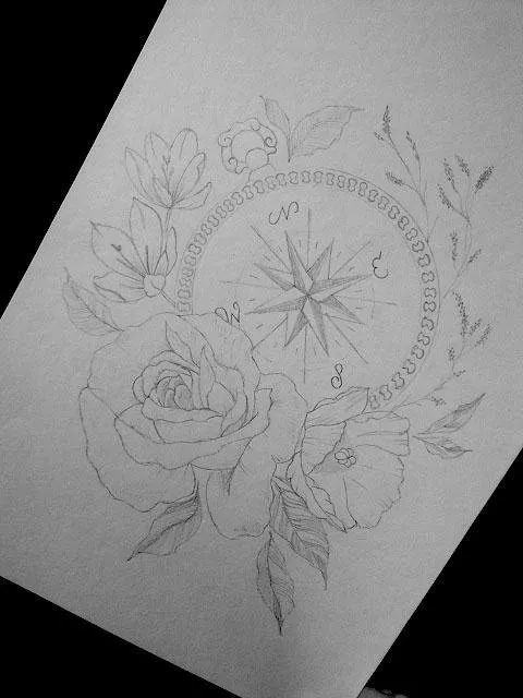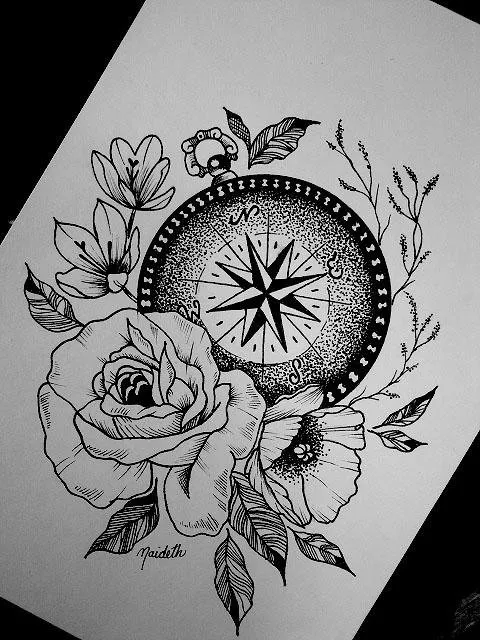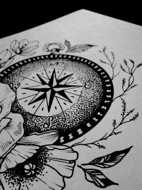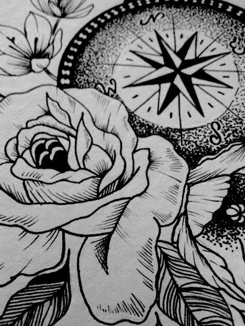 Hoy te traigo un hermoso boceto, esta vez se trata de una brújula específicamente para un tatuaje femenino, ciertamente los tatuajes de brújulas pueden ser tanto para mujeres como para hombres, pero los elementos que están alrededor definirán el género.El boceto incluye el puntillismo como técnica principal, (arte muy usado en tatuajes), ademas agregue algunas flores y ramas a su alrededor. A continuación te mostraré en detalle el paso a paso del boceto: