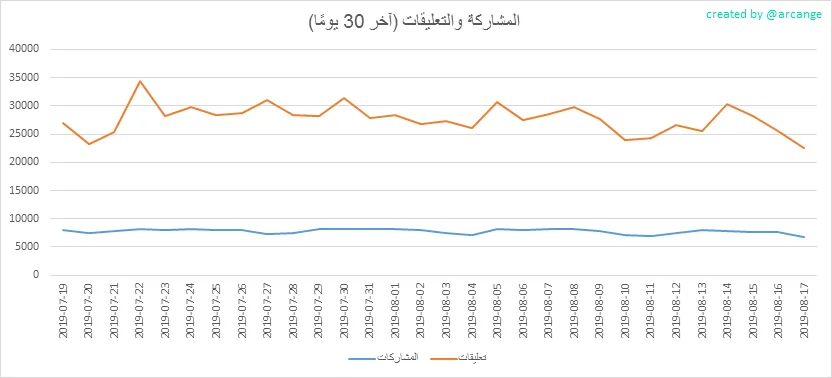 تعرض هذه الرسوم البيانية إجمالي العائد الموزع (المشاركات والتعليقات) لكل يوم.