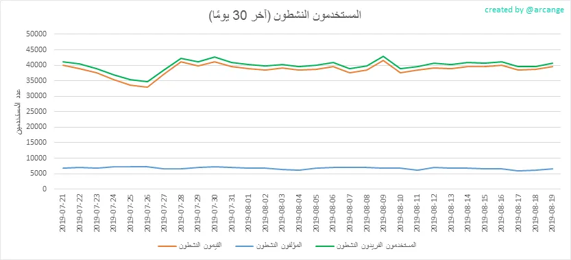 تحذير: هذا الرسم ديناميكي! يمكن للمستخدم التسجيل يومًا ما وتصبح نشطة بعد بضعة أيام. لذلك ، قد يتغير عدد المستخدمين النشطين في تاريخ محدد من يوم لآخر.