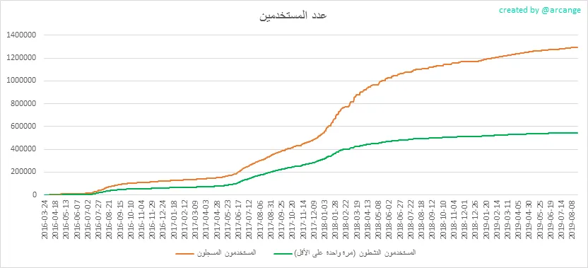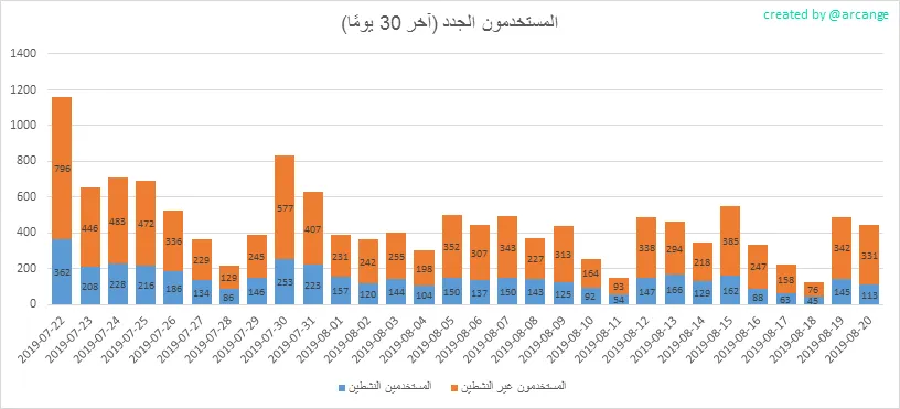 تحذير: هذا الرسم ديناميكي! يمكن للمستخدم التسجيل يومًا ما وتصبح نشطة بعد بضعة أيام. لذلك ، قد يتغير عدد المستخدمين النشطين في تاريخ محدد من يوم لآخر.