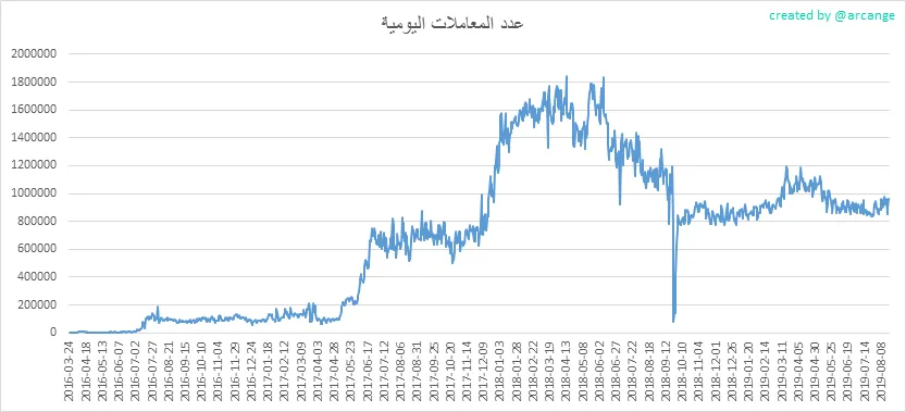 يوضح هذا الرسم البياني عدد المعاملات اليومية. هذا يعطيك فكرة عن النشاط كله على blockchain.