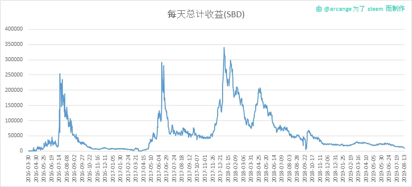 这些图表显示了每一天在帖子和评论上的收益分配情况。