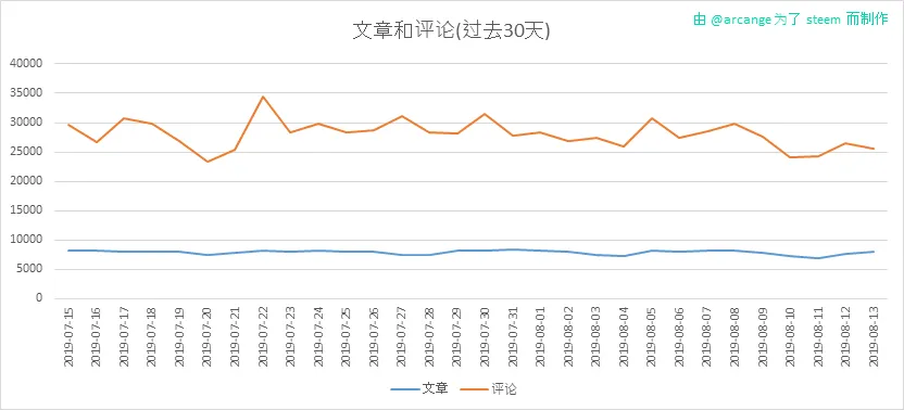 这些图表显示了过去30天内整个区块链上的帖子和评论的演变情况。