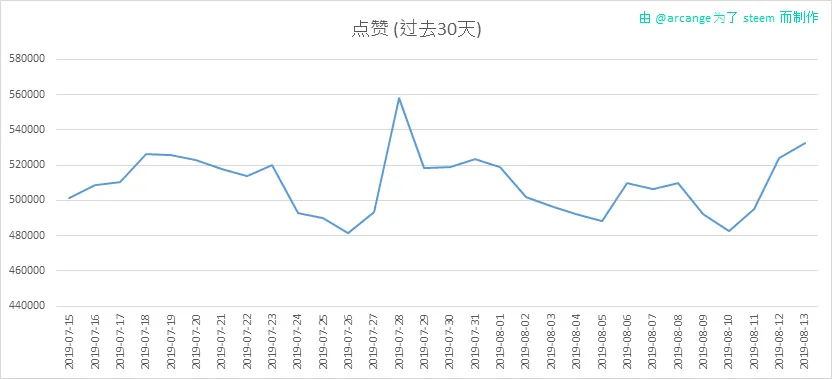 这些图表显示了过去30天内整个区块链上助力(点赞)的发展情况。