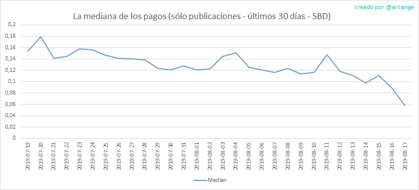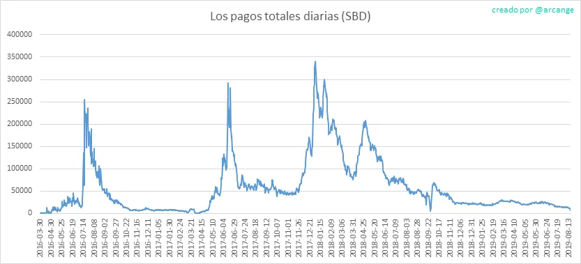 Estos gráficos muestran el total de los pagos distribuidos (mensajes y comentarios) para cada día.
