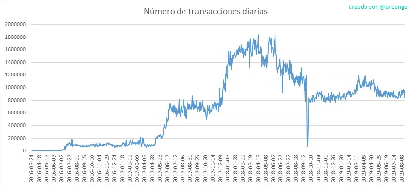 Este gráfico muestra el número de transacciones diarias. Esto le da una idea de toda la actividad en el blockchain.