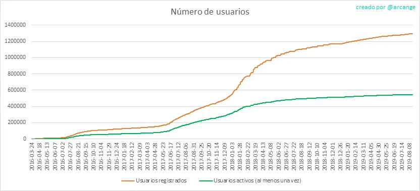 Estos gráficos muestran la actividad de los usuarios desde 2016 y en más detalles de los últimos 30 días.