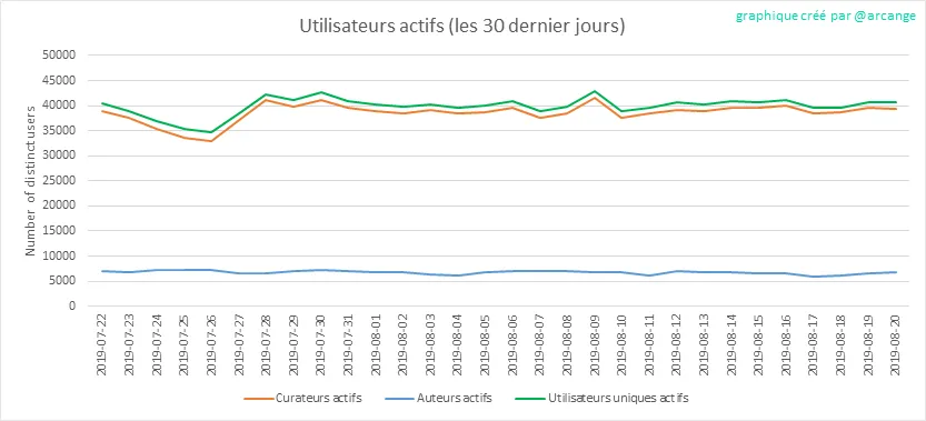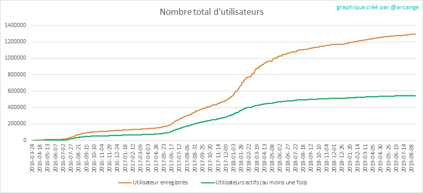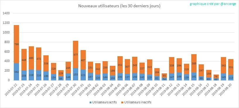 Attention: ce graphique est un peu dynamique! Un utilisateur peut s'inscrire un jour et ne devenir actif que quelques jours plus tard. Par conséquent, le nombre d'utilisateurs actifs à une date donnée peut varier d'un jour à l'autre.