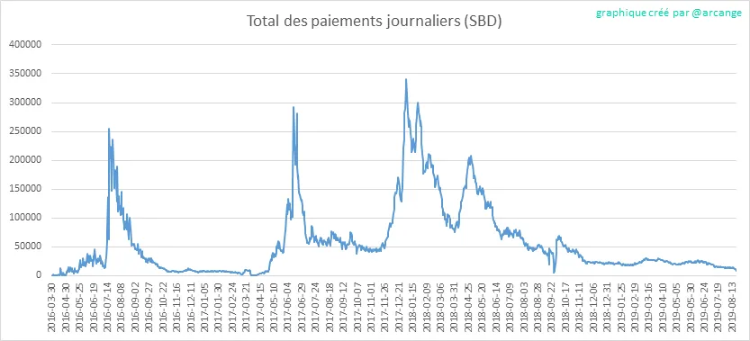 Ces graphiques montrent le total des paiements distribués (publications et commentaires) pour chaque jour.