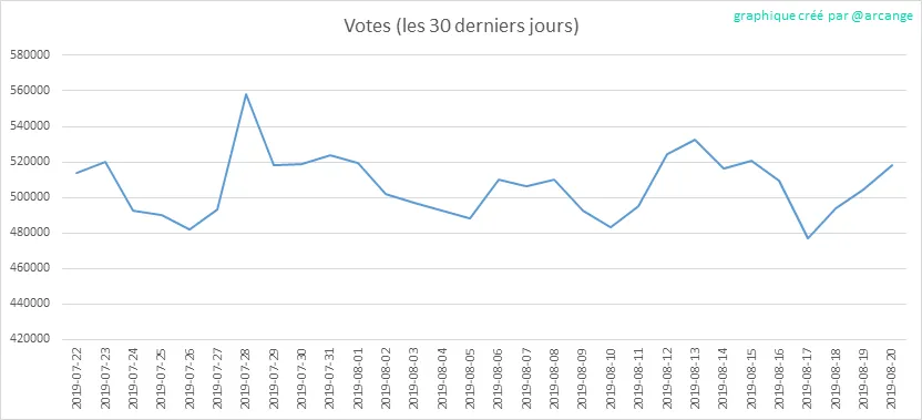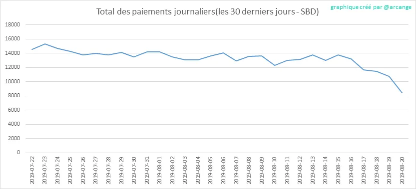 Toutes les informations présentées dans ce rapport sont basées sur les données collectées dans la blockchain jusqu'au 20-08-2019 à minuit, heure UTC. L'objectif de ce rapport est de vous fournir une vision claire de ce qui se passe quotidiennement dans la blockchain Steem.