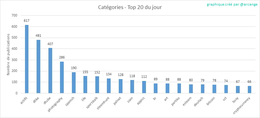 Ce graphique montre les catégories les plus utilisées pour les publications ce dernier jour.
