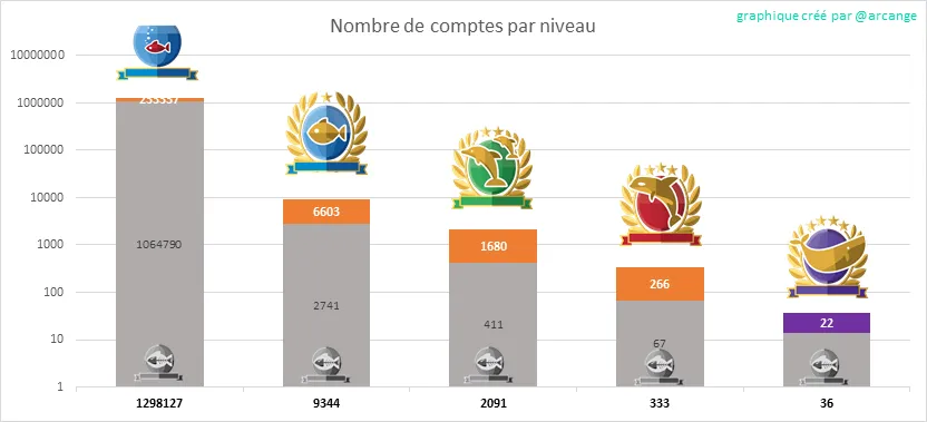 La partie grise de chaque colonne indique le nombre de comptes inactifs (voir la définition d'inactif ci-dessus).