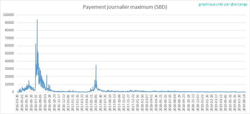 Ces graphiques montrent le total des paiements distribués (publications et commentaires) pour chaque jour.