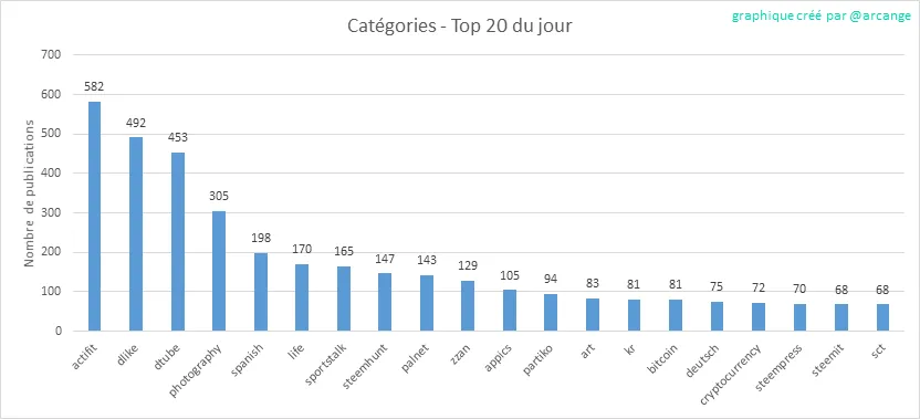 Ce graphique montre les catégories les plus utilisées pour les publications ce dernier jour.