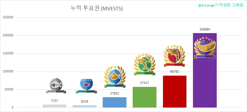 이 그래프는 보팅 파워의 누적 분포를 보여줍니다. 각 단계마다 전체 보팅 파워의 합을 볼 수 있습니다.