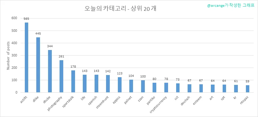 이 그래프는 전체 기간 중 상위 20개 카테고리의 게시글 숫자를 보여줍니다.