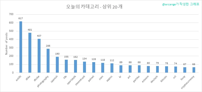 이 그래프는 전체 기간 중 상위 20개 카테고리의 게시글 숫자를 보여줍니다.