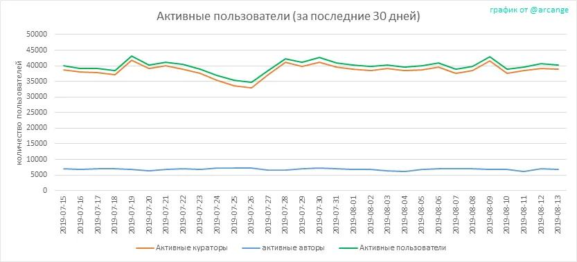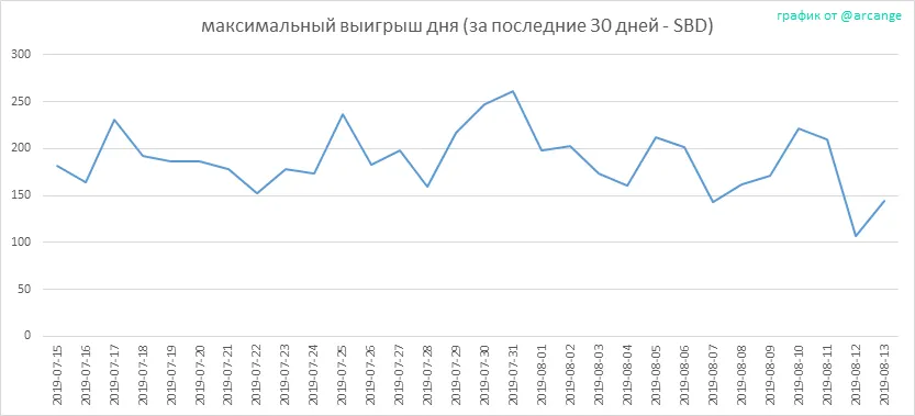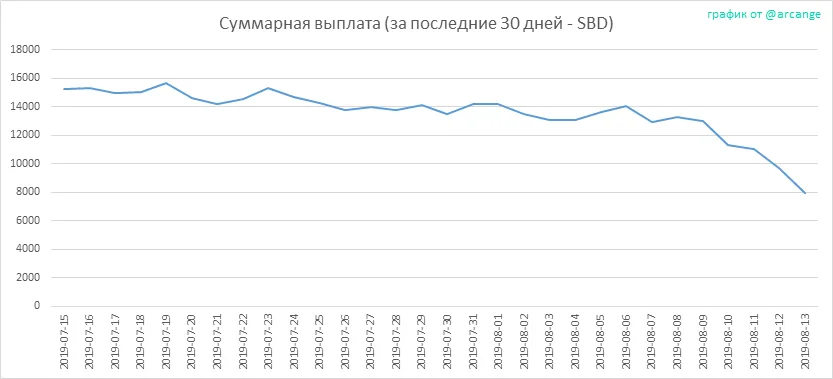 Этот график показывает ежедневную сумму выплат для всех постов и комментариев.