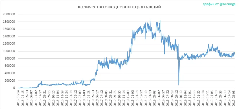 Этот график показывает количество ежедневных транзакции .Это дает представление о всей деятельности на блокчейн.