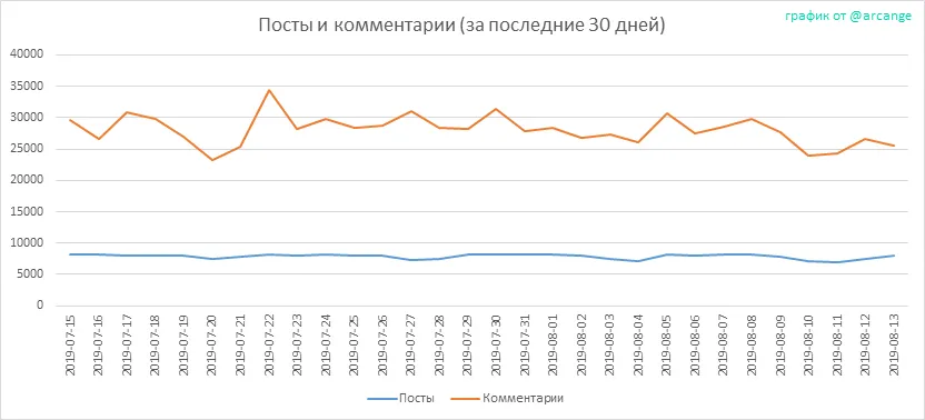 Эти графики показывают изменения количества постов и комментариев, с момента создания и в течение последних 30 дней.