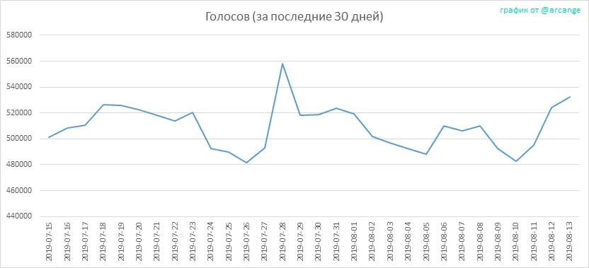 Эти графики показывают изменения количества голосов, с момента создания и в течение последних 30 дней.