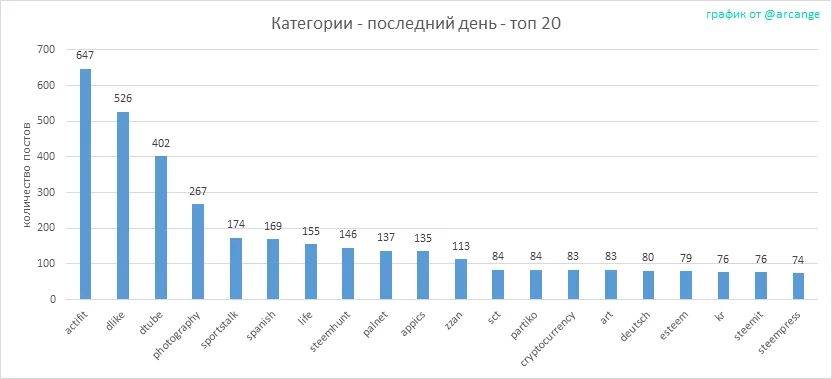 Этот график показывает категории, которые были использованы для публикации постов с момента создания.