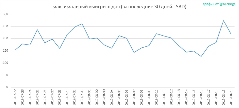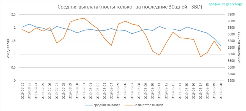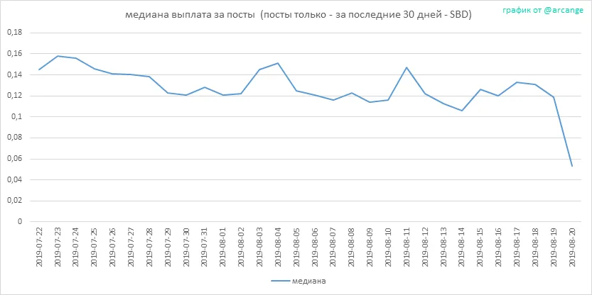 Этот график показывает ежедневную сумму выплат для всех постов и комментариев.