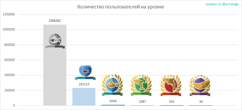 Этот график показывает количество пользователей в зависимости от их ранга. Он включает также неактивных пользователей