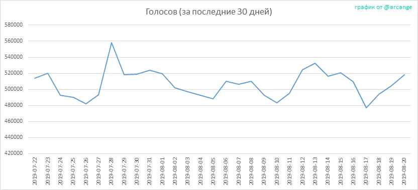 Эти графики показывают изменения количества голосов, с момента создания и в течение последних 30 дней.