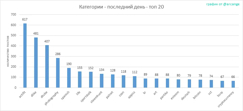 Этот график показывает категории, которые были использованы для публикации постов с момента создания.
