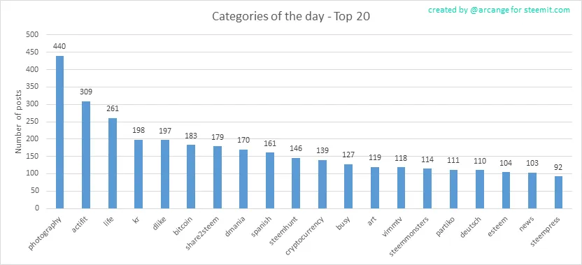 This graph shows the tag has been the most used for publishing posts for the whole blockchain lifetime.