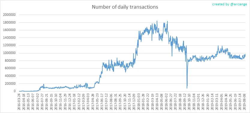 This graph shows the number of daily transactions. This give you an idea of the whole activity on the blockchain.