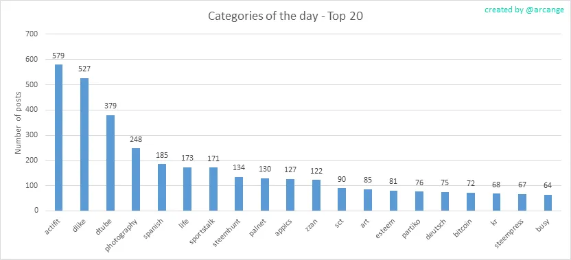 This graph shows the tag has been the most used for publishing posts for the whole blockchain lifetime.