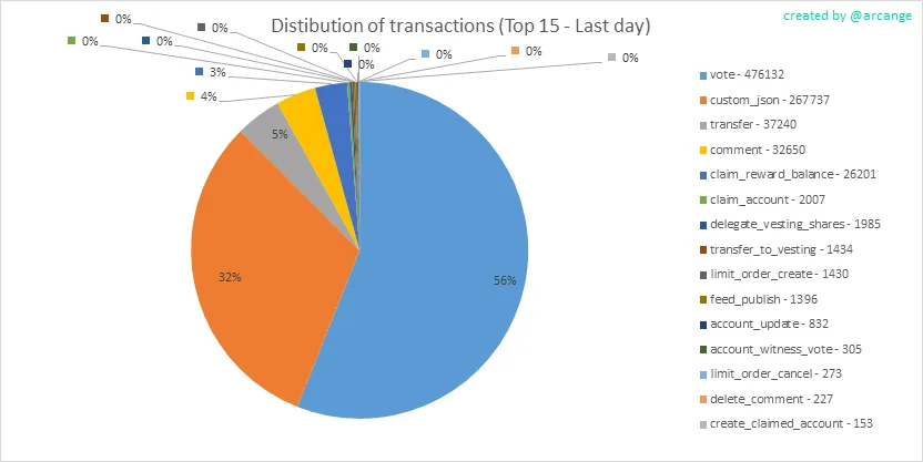 This graph shows the distribution of the top 15 types of transactions by number of operation performed on the blockchain.