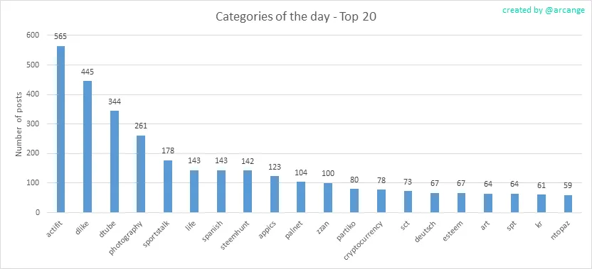 This graph shows the tag has been the most used for publishing posts for the whole blockchain lifetime.