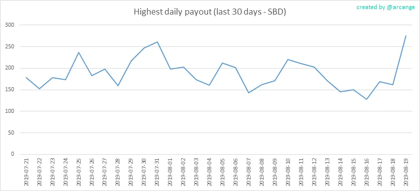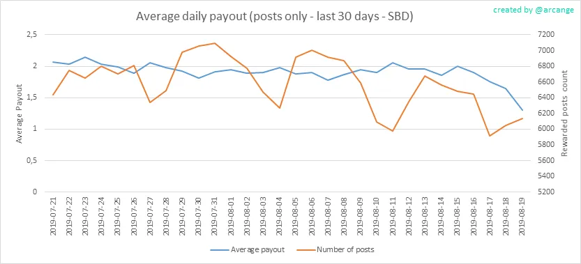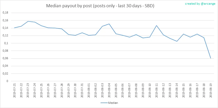 These graphs show the average and median payout per post for the last 30 days.