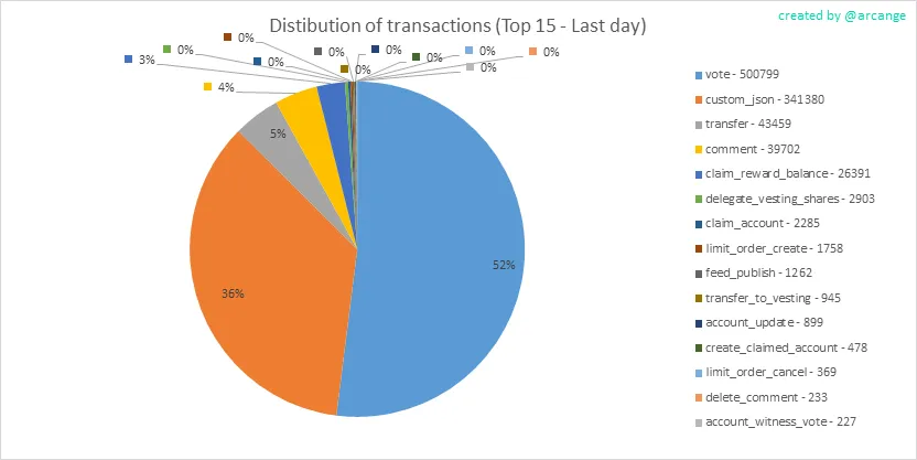 This graph shows the distribution of the top 15 types of transactions by number of operation performed on the blockchain.