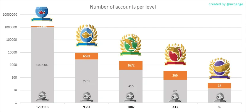 In this graph, the orange line shows the total number of registered accounts.