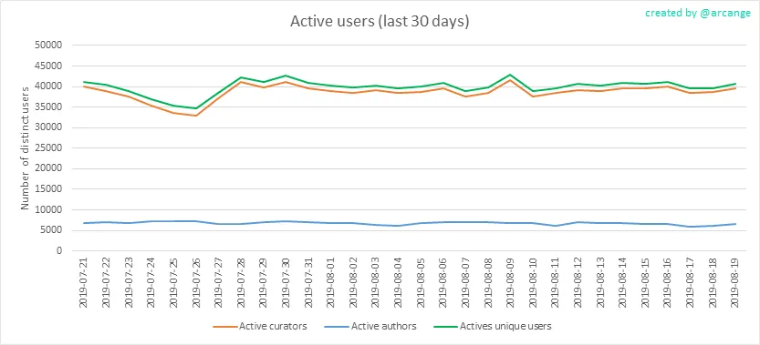 All the information presented in this report are based on the data collected from the blockchain until 2019-08-19 midnight UTC time. The goal of this report is to provide you with a clear view on what is happening daily on the Steem blockchain.